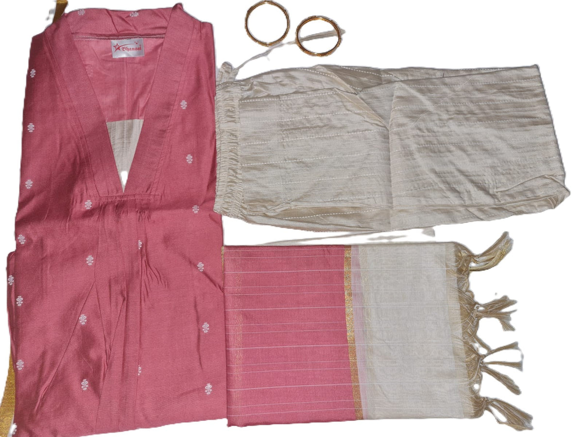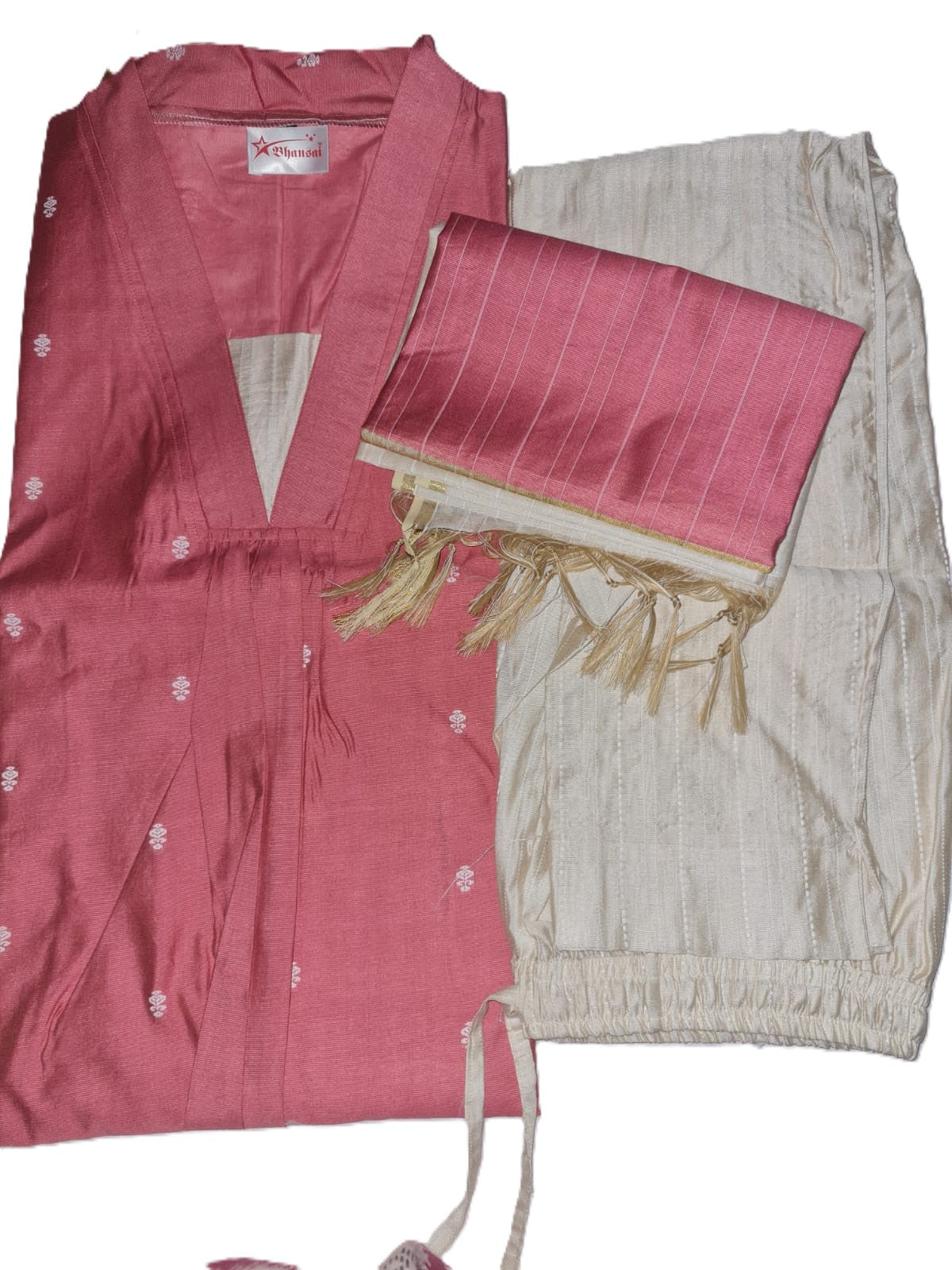 Grace meets tradition in this elegant Chanderi Silk Pink 3-Piece Set — crafted for timeless beauty.