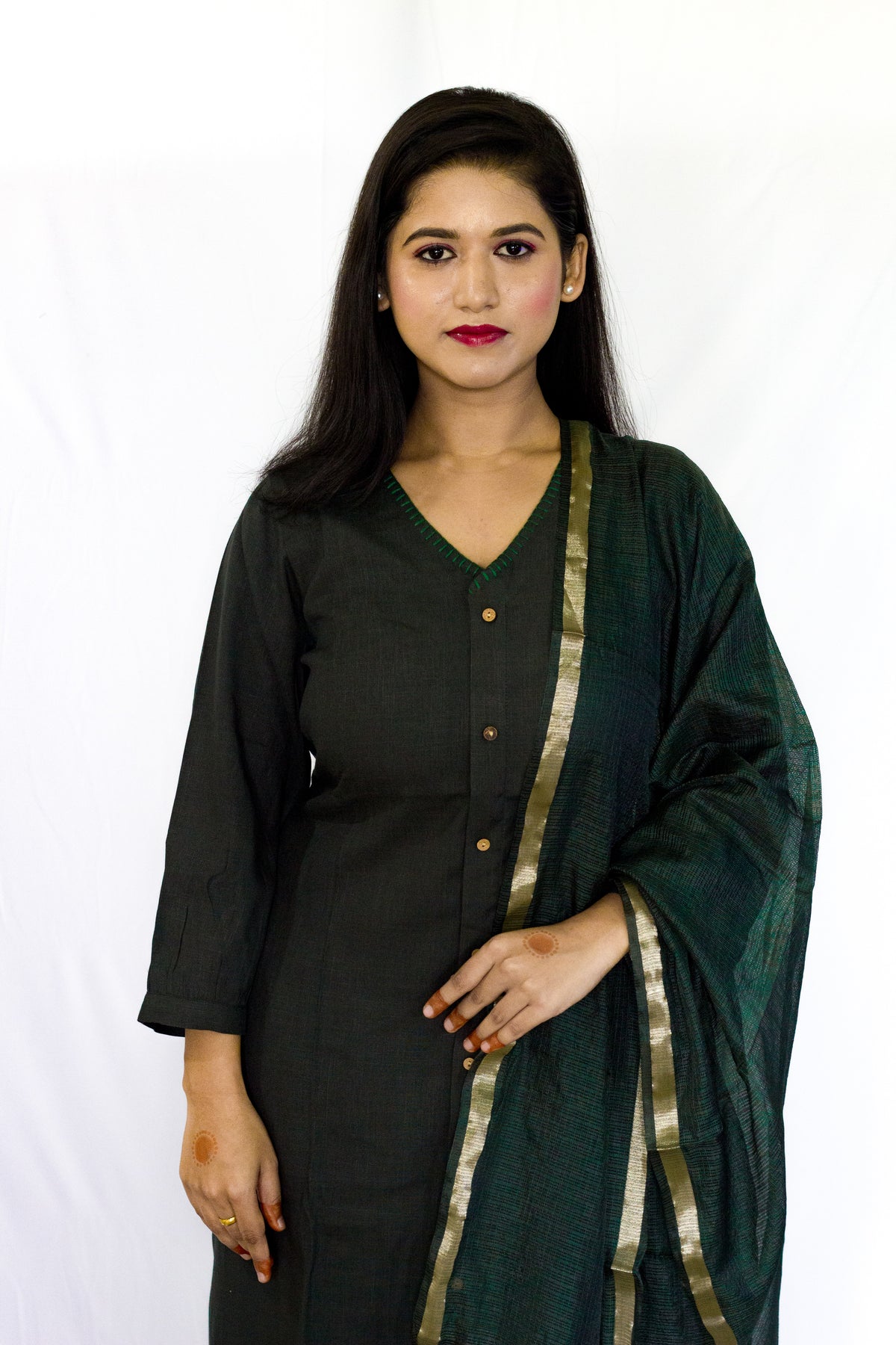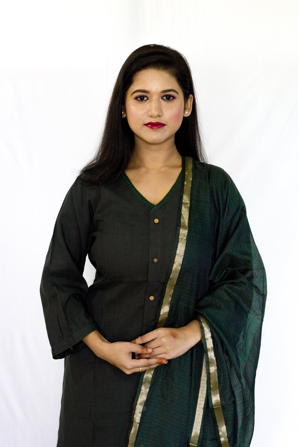 Bring effortless elegance to your ethnic wardrobe with this versatile 3-piece set in a graceful grey shade. Crafted from breathable linen, this ensemble offers both comfort and sophistication, perfect for everyday wear or special occasions.