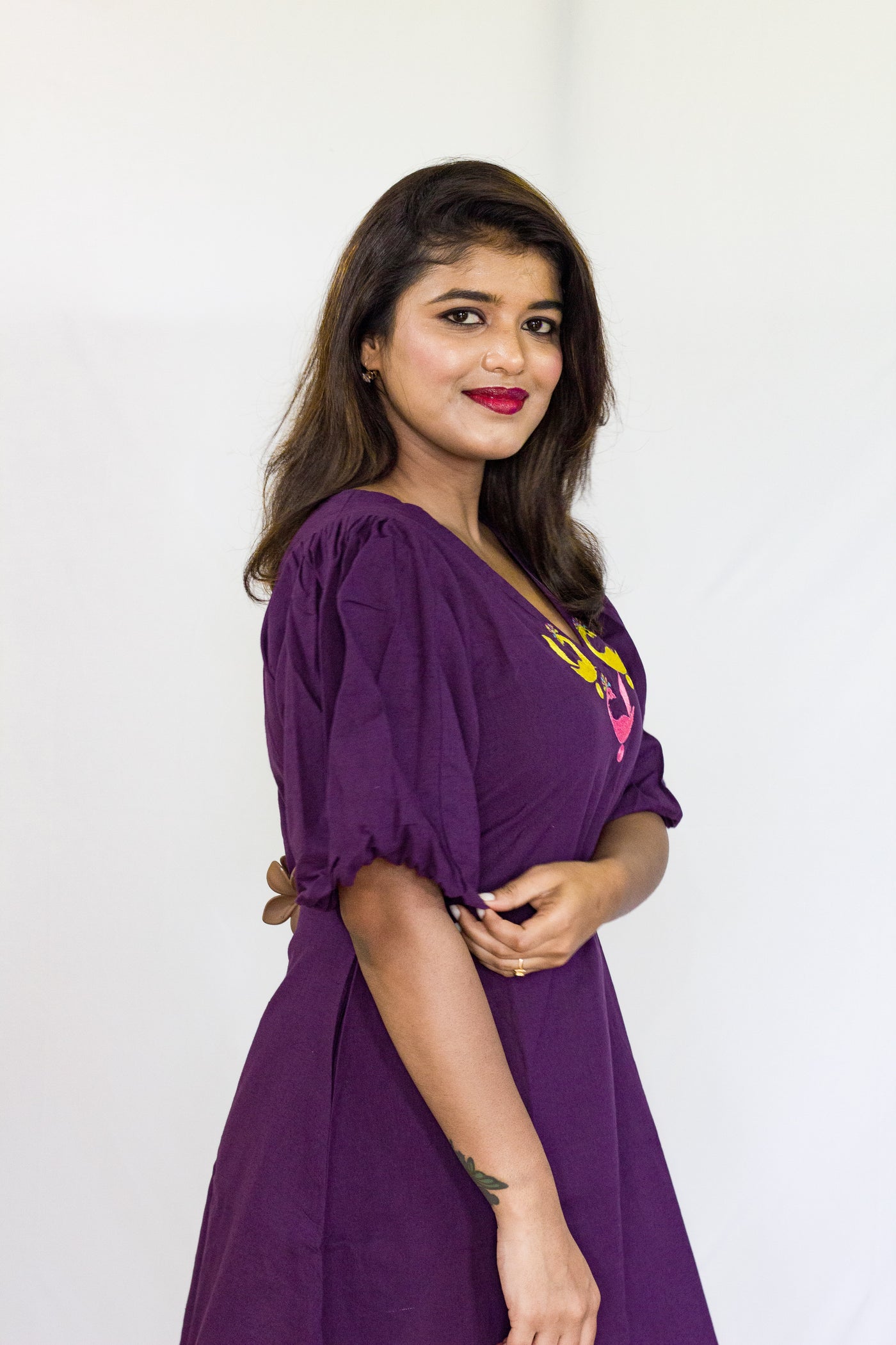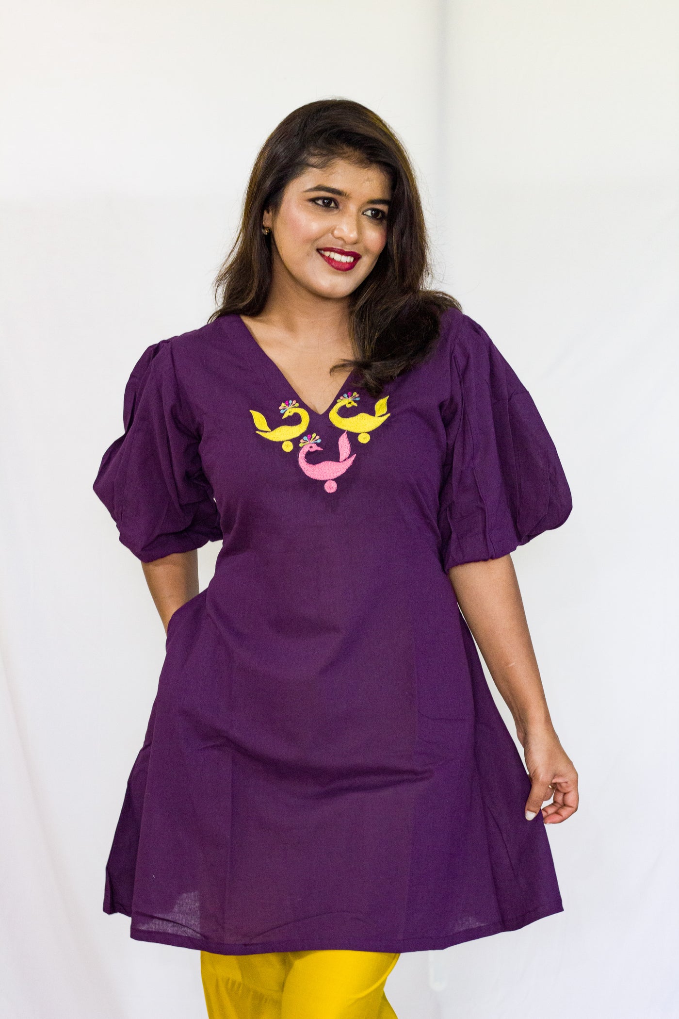 Purple Peacock Designed Short Top Make a chic statement with this stylish short top in a rich purple hue, enhanced with an elegant peacock-inspired design. Perfect for pairing with jeans, skirts, or ethnic bottoms, this versatile piece blends contemporary fashion with artistic flair.